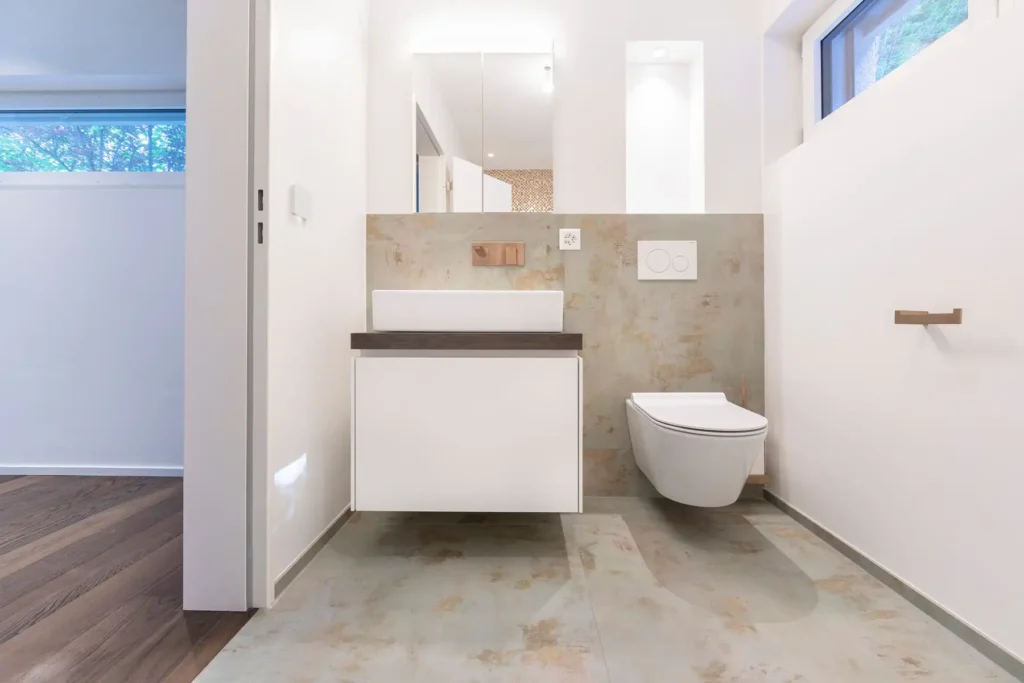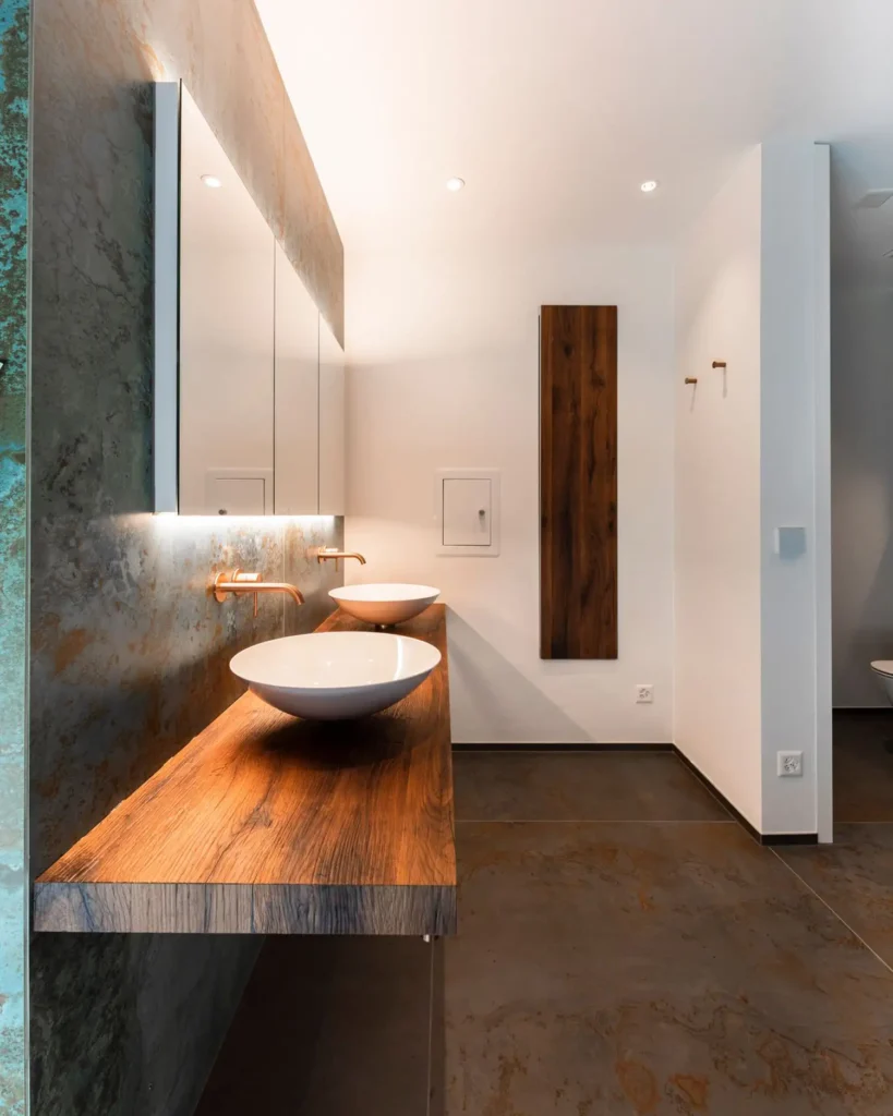 Im Badezimmer sind vielfältige Materialien möglich – von Mosaik, Naturstein und Keramik bis hin zu Holz für eine warme Atmosphäre. Lassen Sie sich inspirieren!
